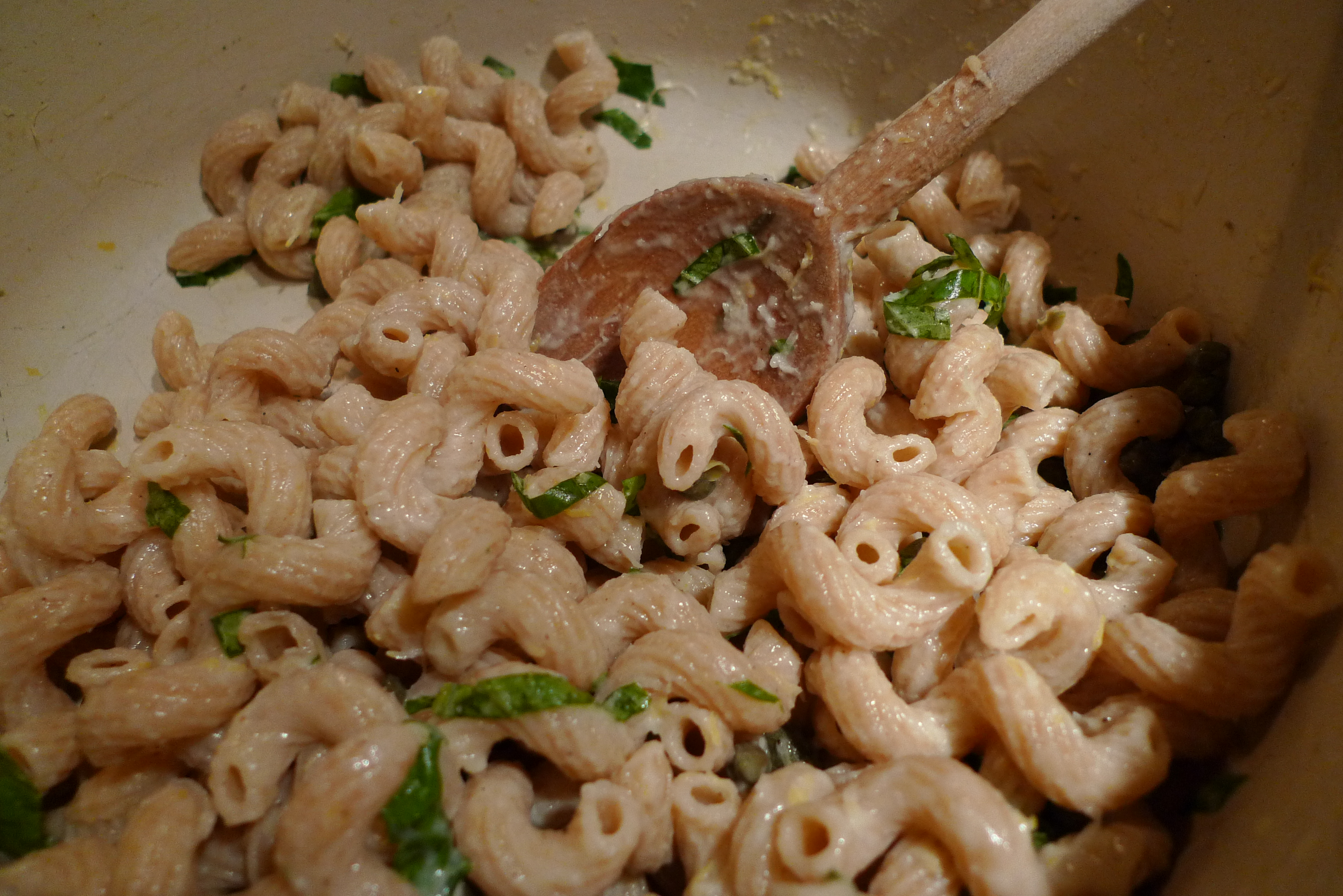• 1/2 pound whole-wheat pasta, any shape (I used twisty gobetti)