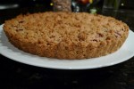 For topping, mix together sugar, flour and cinnamon. Add in cubed butter and process with hands or with a pastry blender. Set aside.