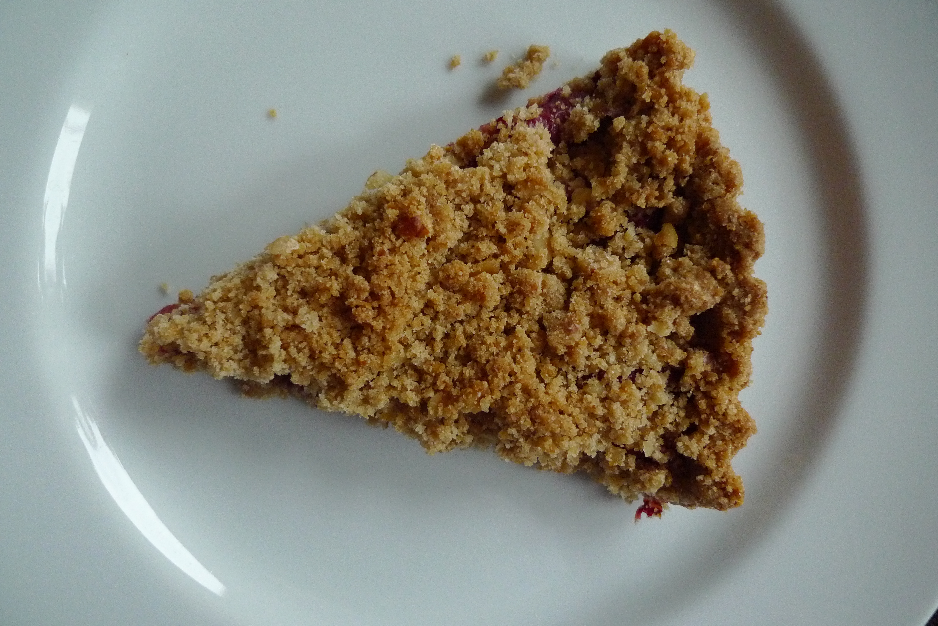 Sprinkle the remaining crumb mixture over the plums. Bake for 40 minutes, or until the topping is lightly browned. Let cool for 10 minutes on a wire rack. Transfer tart to a flat place or cake stand. You can eat it at room temperature but I recommend chilling it and serving with whipped cream.