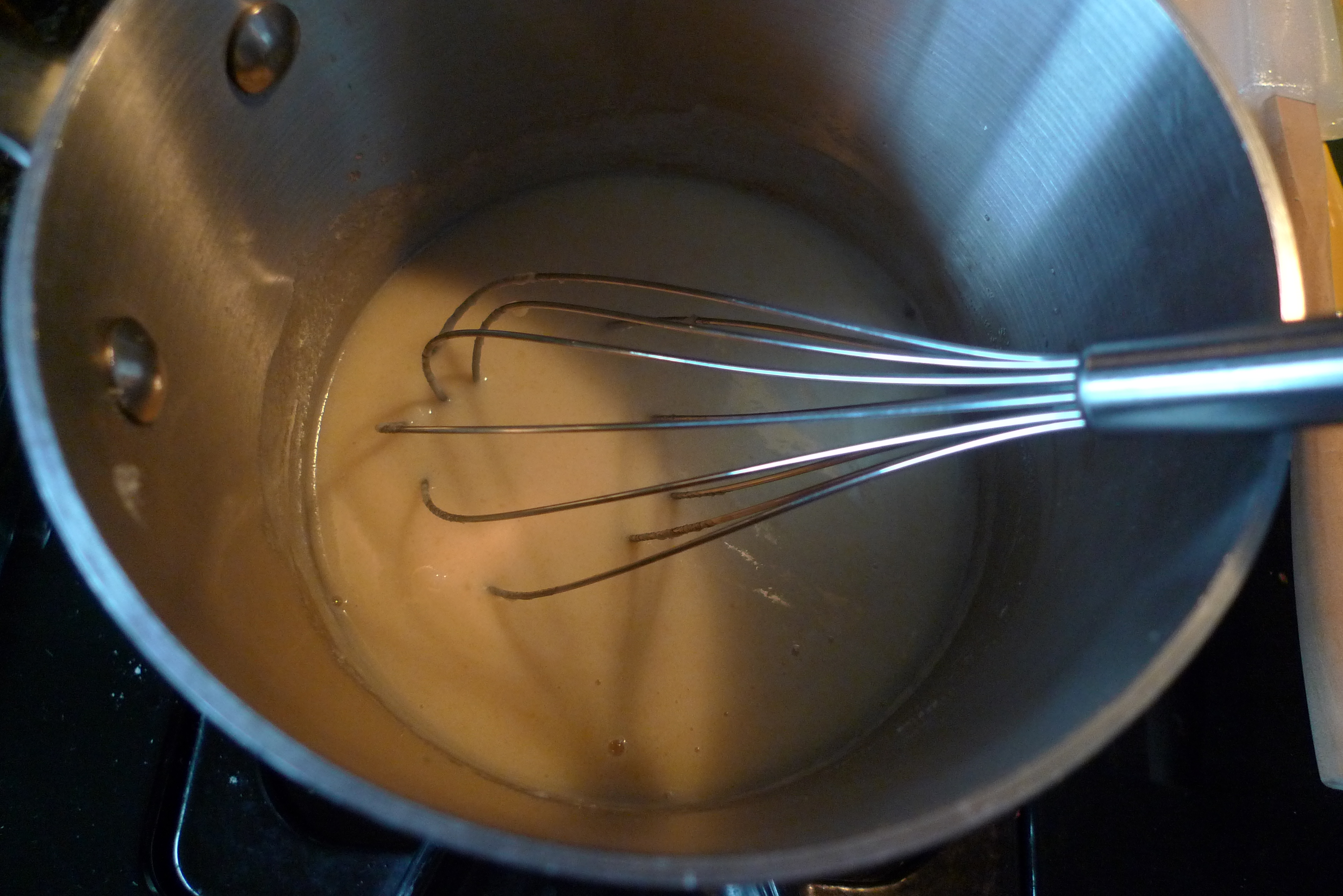 Bring water to a boil, season with salt and cook macaroni to according to package directions, leaving the macaroni with a slight bite (al dente). Heat butternut squash in microwave according to package directions (or use stove top). Set aside. Squash should be very soft – turn into a puree with the back of a spoon.
